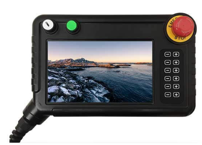 按鈕一個(gè)三段位安規(guī)使能開關(guān),一個(gè)鑰匙開關(guān);一個(gè)帶燈自鎖開關(guān),一個(gè)安規(guī)急停開關(guān)